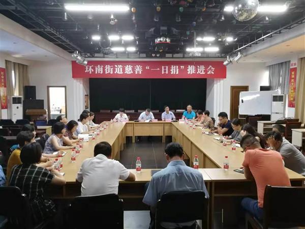 2019年8月1日下午,环南街道召开了慈善"一日捐"推进会。街道党工委书记、街道办事处主任林建刚和街道办事处副主任林海萍等领导出席,分管领导街道办事处副主任姚红波主持了会议,街道工青妇、经贸、民政、商会等部门和各社区、村干部参加了会议。