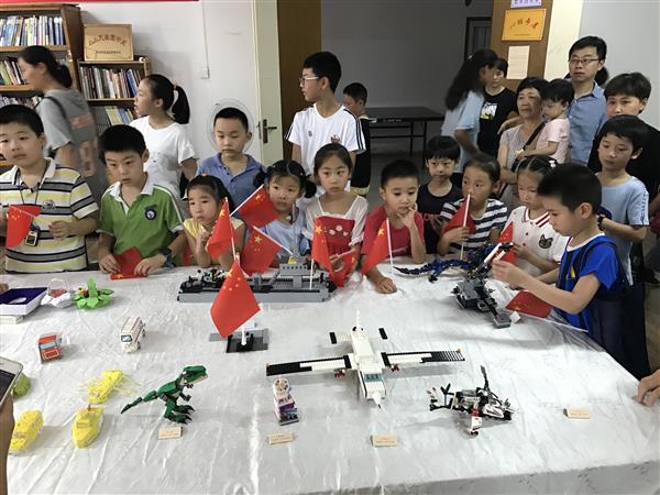 815日上午,慈善总会联合区关工委在“小小慈善图书室”( 金平颐景园沁园书屋)开展了“我和我的祖国  童心飞翔” 作品展活动,全区青少年创作的作文、绘画、乐高、折纸等43篇作品参加展出,丰富多彩的作品吸引了学生、家长们前来观展,现场还为孩子们颁发了鼓励证书。