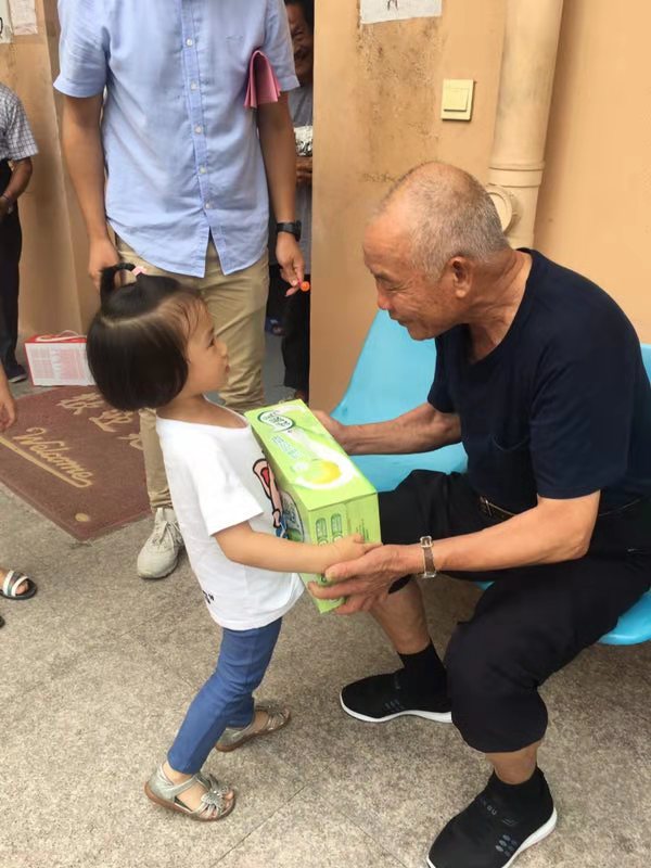 107日下午,总会工作人员和庆庆佛艺店店主一起带着爱心善款和饼干、牛奶等食品来到马岙街道敬老院,为老人们送去重阳节的祝福,陪他们度过一个温馨愉快的节日。