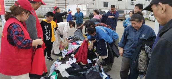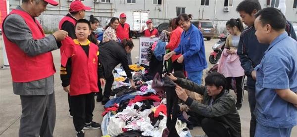 10月20日下午下午,定海区慈善拥军车队的志愿者一行9人,来到北蝉工业区新马菜场,在这里摆开了摊子,开展又一轮“爱循环·衣循环”活动,把1000余件秋衣分发给新居民们。