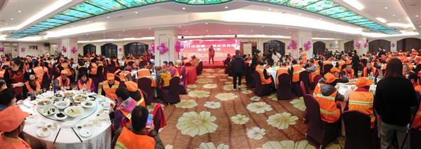 1月8日晚,在定海怡东凯丽大酒店宴会厅,充满欢声笑语。24桌丰盛的酒席依次排列,200名一线环卫工人齐聚一堂,边看现场节目边吃“慈善年夜饭”。