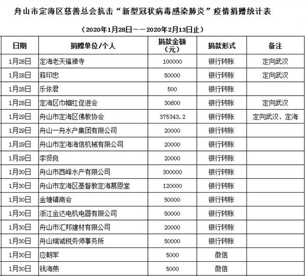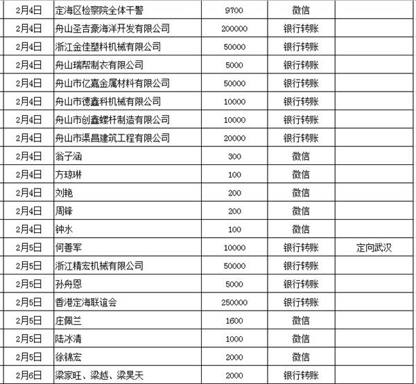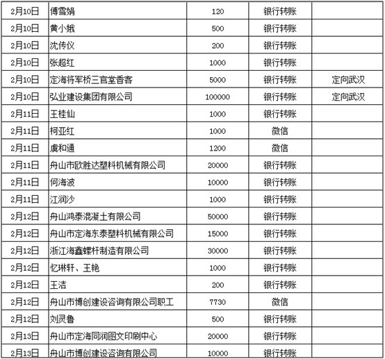 中共舟山市定海区委政法委员会一日捐单位10000元 个人20人计3200元