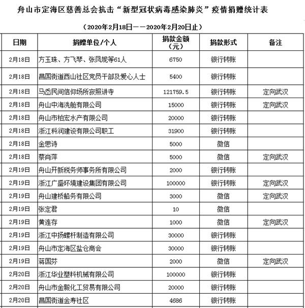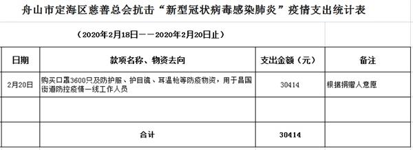 定海区慈善总会2月18-2月20日防控新冠肺炎疫情捐赠款收支公示
