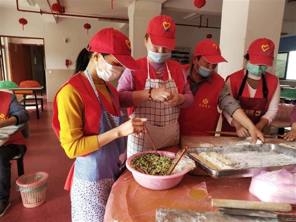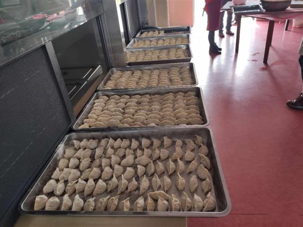在敬老院食堂内,志愿者们有的和面,有的擀饺子皮,有的包饺子……大家分工合作,配合默契。经过将近3个小时的辛勤劳动,中午时分,饱含爱心与关怀的饺子已经整齐地排着队,等待下锅。20分钟后,敬老院里欢声笑语,热腾腾的饺子,让院内的每一位老人都感受到了温暖。