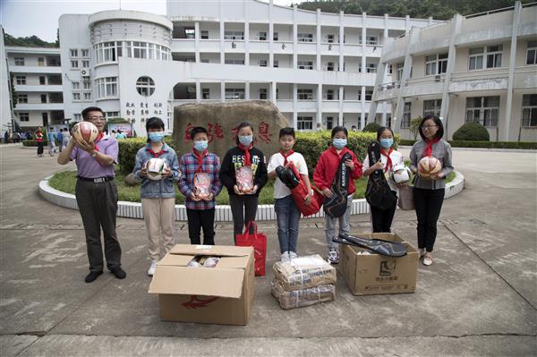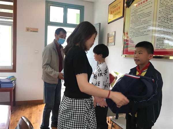 5月22日,总会工作人员慰问定海海润学校困难学生,为孩子们送去崭新的书包和精心准备的爱心食品。