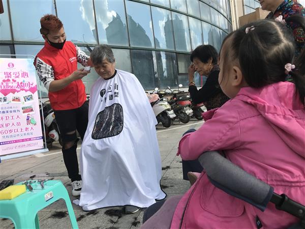 义卖活动得到了慈善义工们的大力支持,慈善拥军车队吴发喜、义工赵翔、徐秋芬、夏凤娟、高红女等积极参与,他们主动承担起活动物品的搬运、整理以及宣传、引导等工作,非常辛苦。特别是“巴由美业”公益团队带领7名志愿者一起参与义卖活动,现场为老人们免费理发20人次,受到老人们的好评与欢迎。他们还提出了“汇聚爱心 情暖人间”爱心项目,旨在为环卫工人、医护人员、60岁以上老人提供免费理发服务。