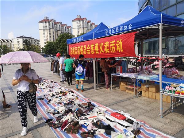 为迎接第六个“中华慈善日”,弘扬慈善文化,引导更多社会力量参与慈善事业,营造全民慈善的良好氛围,9月4日上午,定海区慈善总会在盐仓开展慈善义卖活动,义卖商品都是爱心企业、爱心人士捐赠的,有成人四季衣童装、童鞋等,吸引了过路市民前来“淘宝”。