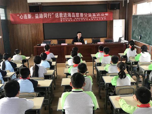 10月11日,区慈善总会、区关工委、舟山市海洋泉文化研究会慈善公益专委会联合开展的“心连新、益路同行”送教进海岛慈善公益宣讲活动日前走进金塘,为柳行中心小学的新居民学生开展送教送文化服务,打牢青少年成长的思想根基。