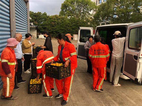 10月25日下午,伴着温暖的午后阳光,一爱心商家亲自装车将5000斤橘子运送到了定海环卫所。
