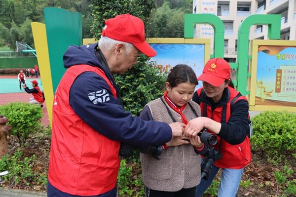 4月8日下午,市老干部摄影艺术研究会的志愿者们又走进校园,与孩子们打成一片。孩子们分为10个小组,每个组各有两位研究会志愿者为孩子们进行拍摄和指导。在拍摄孩子们阳光风华活动形象的同时,手把手指导学生进行各种景物的拍摄,让孩子们感知拍摄,学习摄影,从而拓展孩子们的艺术技能。孩子们在实践中运用学到的摄影知识,拍摄美景,兴高采烈地说:“美好的拍摄,好有趣,很开心!”