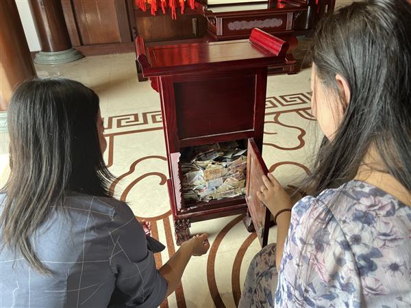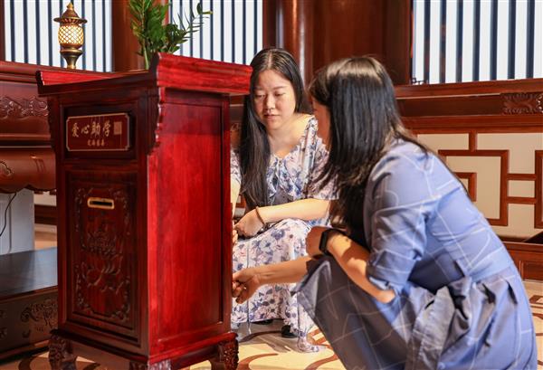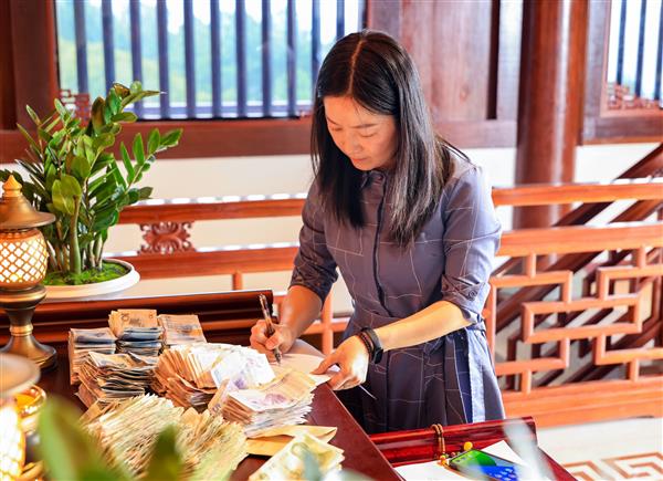 10月15日,状元阁爱心助学箱迎来首次开箱,在现场,定海区慈善总会和舟山东海云廊有限公司的工作人员逐一清点箱内的现金,并将结果进行详细记录和汇总,随后核对线上的每一笔捐款记录,确保每一笔资金都准确无误。