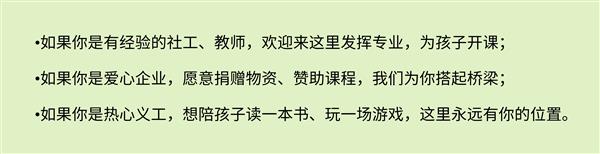 值得期待的是,今天首发的慈善服务驿站既是暑期营的“根据地”更是一个开放的爱心枢纽,以暑期营为起点,链接更多力量: